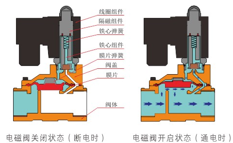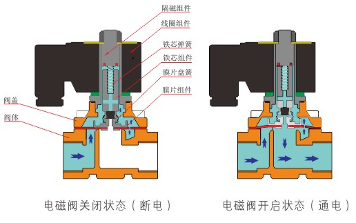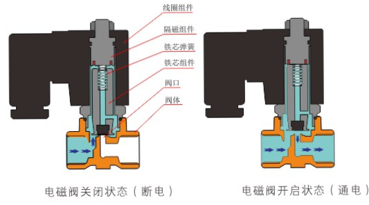 原理:赢博官方网站-赢博yingbo(中国)直动式电磁阀分常闭型和常开型两种。常闭型电磁阀断电时为关闭状态,线圈通电时产生电磁力,动铁芯跟静铁芯吸合,电磁阀阀口打开,介质(流体)通过;当电磁阀线圈断电时电磁阀消失,在弹簧的作用力下,电磁阀动铁芯复位,阀口关闭,介质(流体)不同,电磁阀呈关闭状态。常开型与之相反。